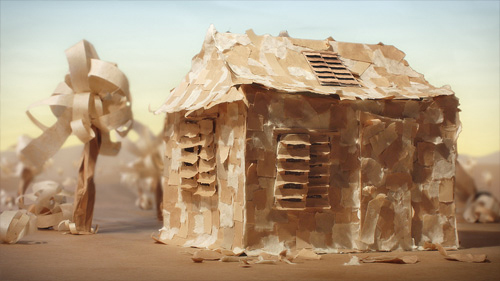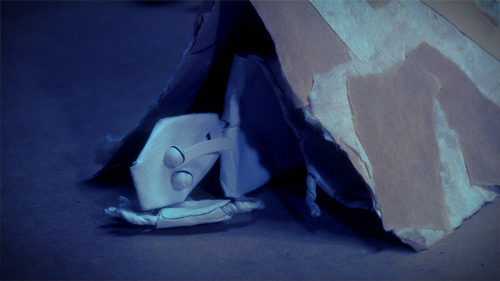 In a paper world, a character makes for comfort, but becomes increasingly obsessed with making new objects and eventually destroy the world around him.