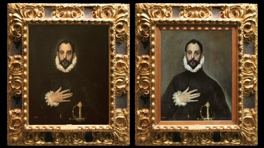 Greco's 'Nobleman with his Hand on his Chest' underwent an in-depth restoration in 1996 which removed the painting's dark background and radically altered its appearance.