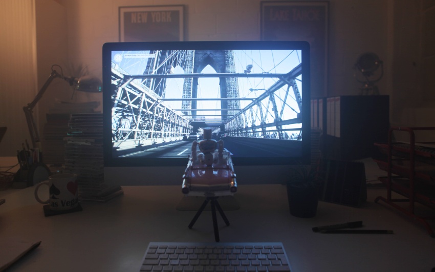 A lonely desk toy longs for escape from the dark confines of the office, so he takes a cross country road trip to the Pacific Coast in the only way he can – using a toy car and Google Maps Street View.