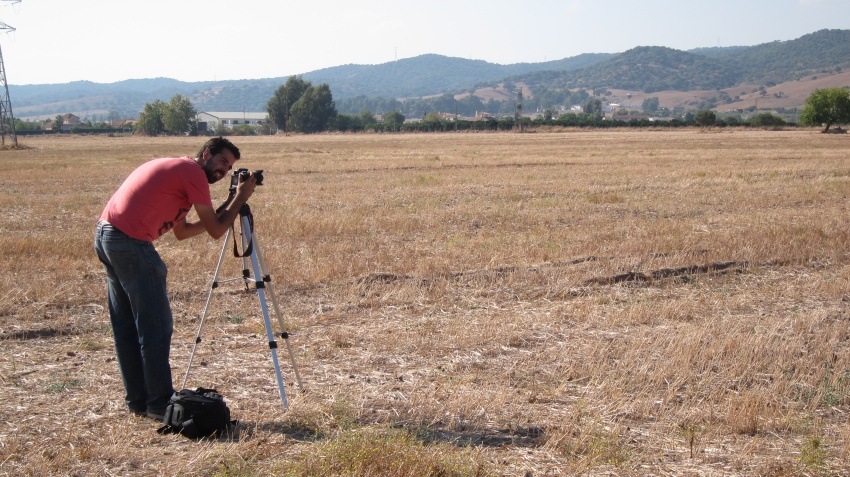 A photographer. A landscape in front of him. Something strange appear in the pictures.