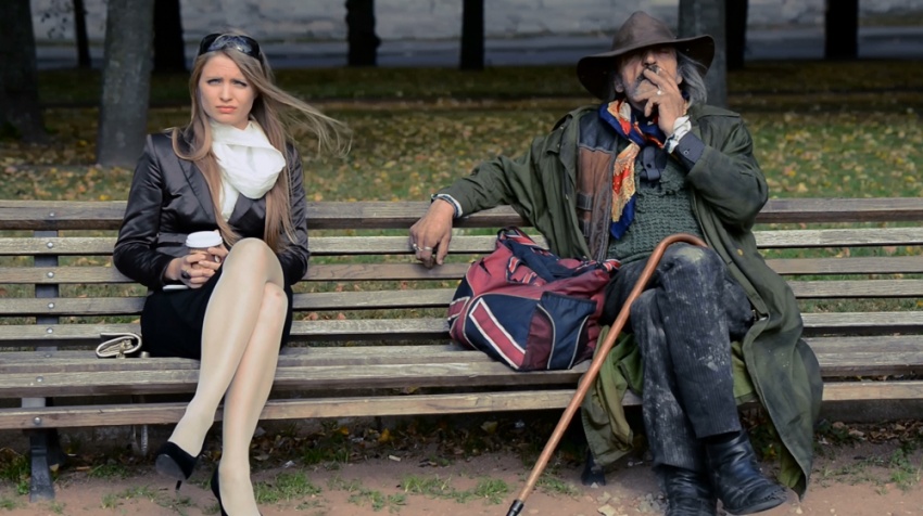 Depressed blonde is sitting on the bench in the city park. She's deep in her internal world and doesn't want to be interrupted. But here comes the stranger.
