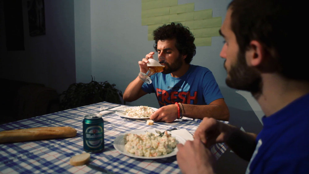 'The Idle' is a guy unemployed that has just been left by his girlfriend. He lives alone and spends all day watching soccer and drinking beer. One day, after a big party, he wakes up in his bed with a young guy with unknown identity that refuses to leave his home.