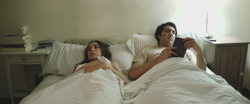 She and he are a young couple. They spend their time sending each other whatsapps, tweeting, and talking on their smartphones. Everything seems all right until they stop looking at the screen.