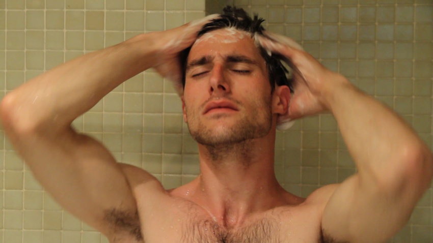 A boy experiments with pleasure as he showers.
