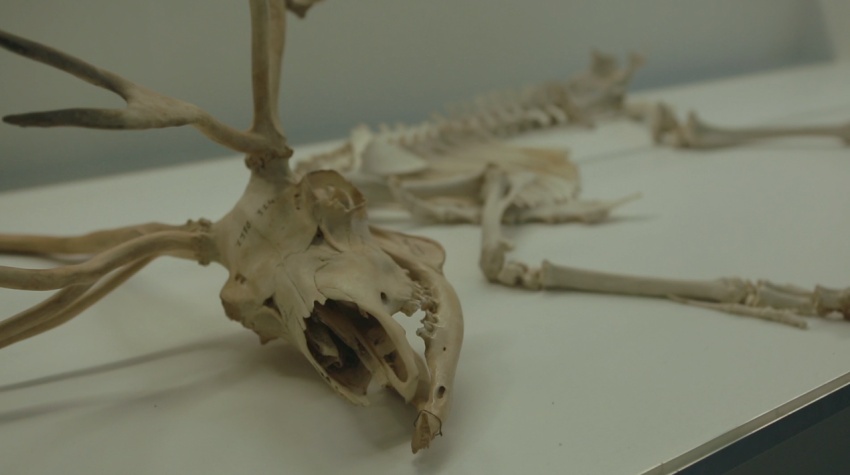 During his research around the station and the forest , she bumps into a mysterious man that works in a prehistorical museum in the middle of the woods.