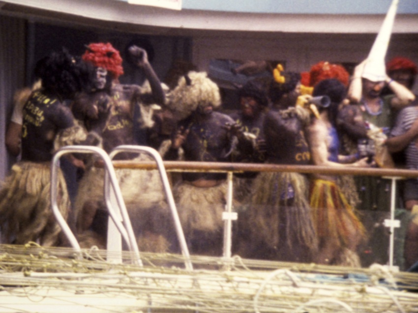 As in many cases, also here it's rather about allusion than description. A demonstration of the function of the central perspective. An idealized representation of a tropical paradise. Strangely, there's no absurdity in this.
