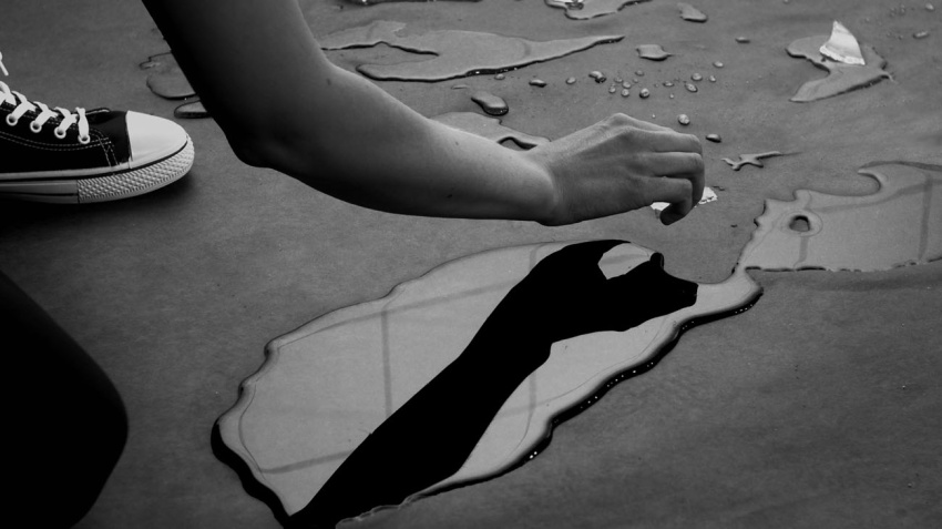 In a place close to reality, a person carries a package, then drops it to the ground with a crash. Someone else explores the content of the box. The story is repeated in what first appears to be an endless loop.