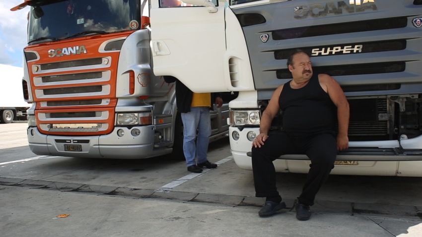 The boredum takes over the truck drivers parked in the rest areas. Sometimes, they talk with their wives with the handsfree device.
