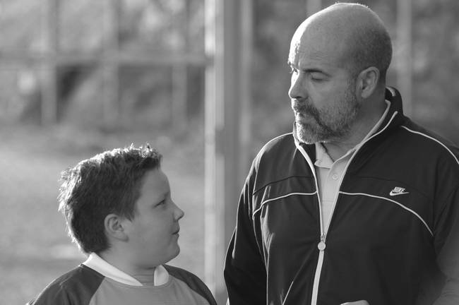 Lucas is ten years old and wearing his new goalkeeper uniform. He's waiting for his opportunity on the bench. The main thing is to take part.