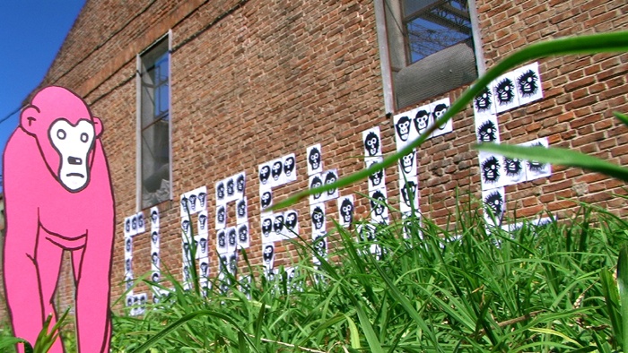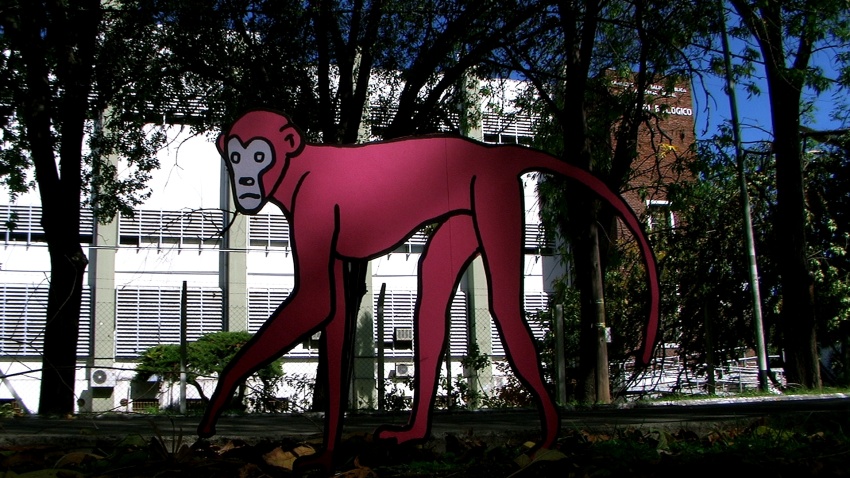 Un mono escapa del arte de tapa del disco "Negro" de la banda Slalom y sale en búsqueda de Clarence, el león bizco de la vieja serie televisiva "Daktari".