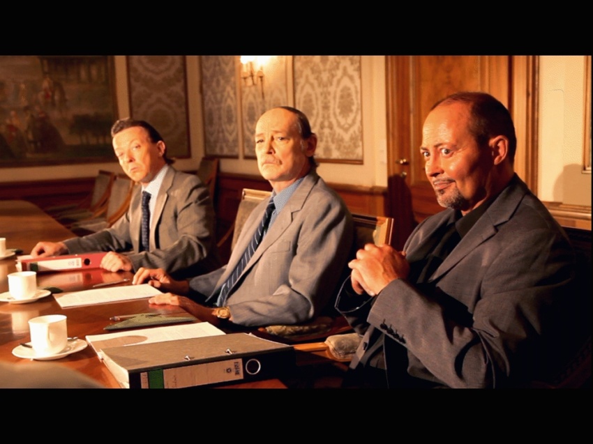 Durante una reunión, seis comerciales tienen que enfrentarse con el hecho de que no venden suficientes "perros mueve cabeza". Asentir estúpidamente con la cabeza es la única respuesta.