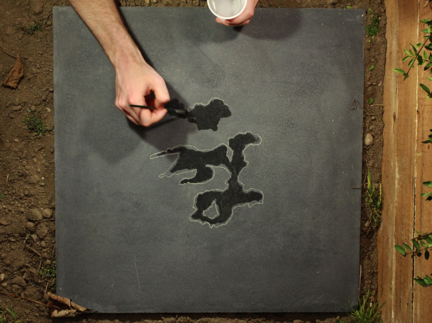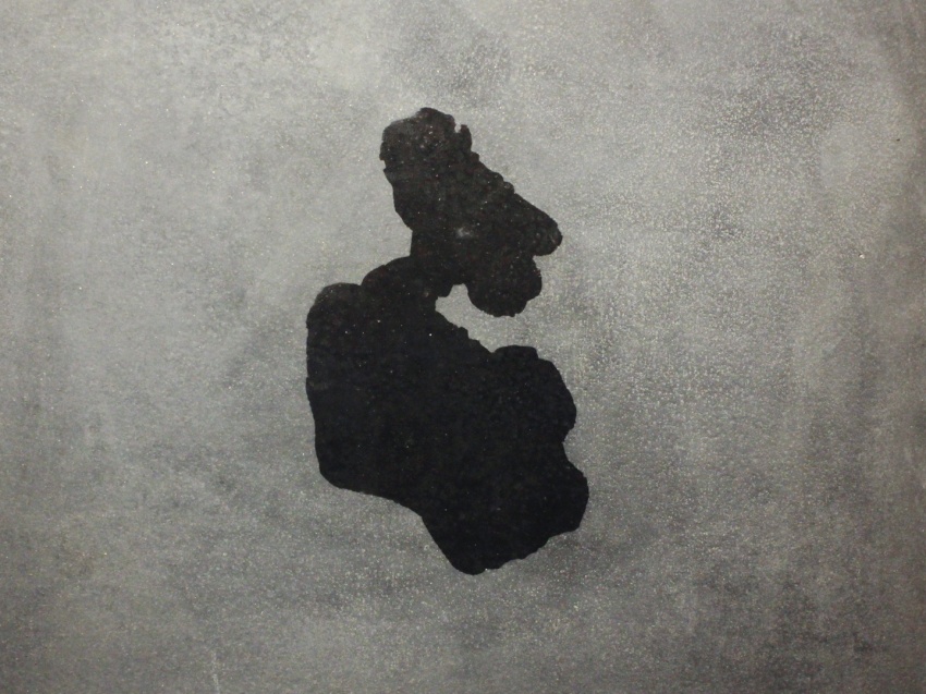 Cuando el tiempo pasa una mancha de agua se seca, se reduce y cambia el tamaño. Justo antes de que el agua esté completamente evaporado el proceso está parado. El nuevo tamaño de la mancha es agrandecido y recreado con agua nueva permitiéndlo que la evaporación continúe.