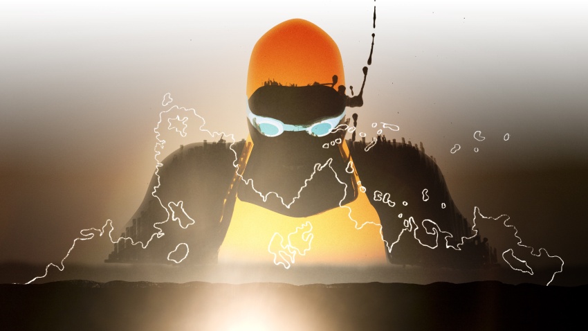 Dos nadadoras de edad avanzada se encuentran en la piscina para su baño ritual. En esta ocasión bucean más profundamente de lo habitual.