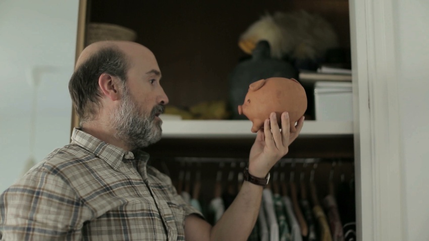 Un padre lleva a su hijo de cinco años al colegio y se dirige al banco a toda prisa. Parece que está metido en líos. Mientras toma un café en un bar, oye a unas madres organizando un cumpleaños. En un cerdito de barro puede estar la solución de sus problemas.
