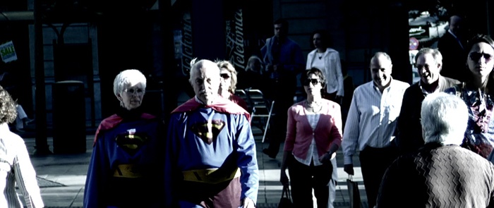 Un matrimonio de ancianos decide disfrazarse de Superman para, finalmente, lanzarse desde una torre de una gran ciudad.